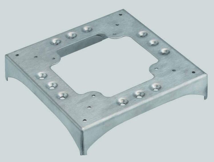 - Форма: прямоугольная, с двумя перфорациями 85×18 мм и двумя вырезами под 90° - обеспечивают свободный вывод кабелей в двух направлениях;