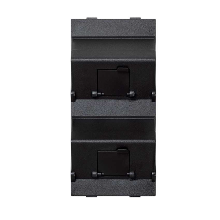 Адаптер Simon s80b-14 - это наклонная центральная плата с двумя разъёмами RJ45 и защитными шторками, предназначенная для организации точек подключения сетевых устройств в открытых кабель-каналах. Подходит для монтажа в распределительных коробках, панелях и шкафах, где важна компактность и доступ к портам.