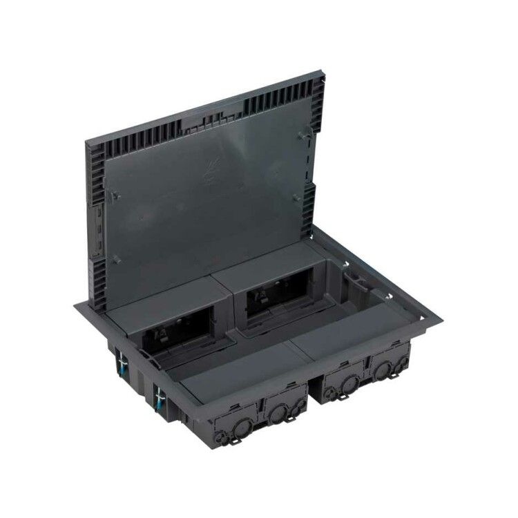 Люк для установки в пол на 8 модулей 45×45 мм и 4 модуля 22,5×45 мм 250×327 мм, глубина 64 мм от Simon (арт. kf400-1) предназначен для скрытой установки в напольном покрытии и обеспечивает доступ к коммуникациям, кабелям и модульным устройствам без нарушения дизайна помещения.