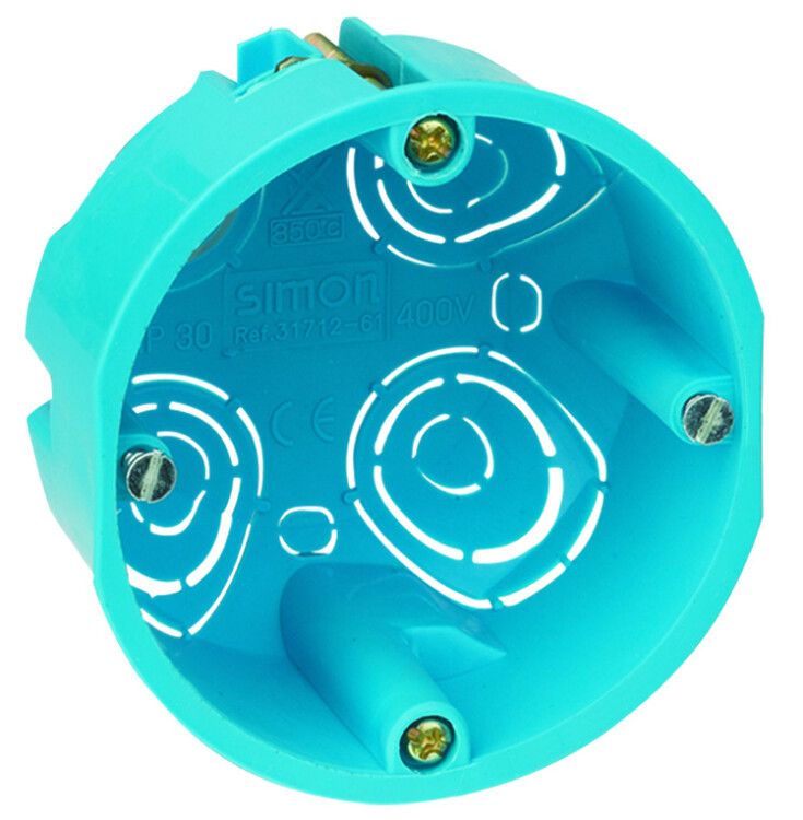 Коробка установочная для пустотелых стен, 1 модуль, 60 мм, термопласт, синяя, серия Sim.27,82,82N,88 от бренда Simon предназначена для скрытой установки в перегородках из гипсокартона, пеноблоков и других пустотелых материалов. Артикул 31712-61 обеспечивает надёжную фиксацию одиночного устройства - выключателя, розетки или модуля автоматизации - благодаря распорным лапкам и компактной форме.