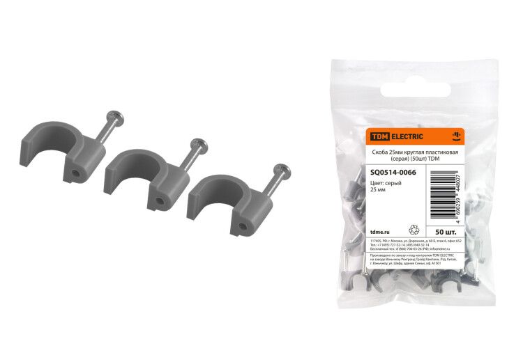 | Скоба 25мм круглая пластиковая (серая) (50шт) | SQ0514-0066 | TDM | 06.03.2026 | Под заказ | 298,08 ₽ | уп. | от 30 дней |