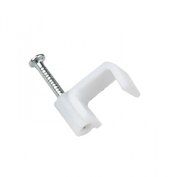 Гвоздь уже установлен - достаточно приложить скобу к поверхности и забить её молотком. Для лучшего результата используйте обычный молоток с весом 400–600 г. Убедитесь, что поверхность не слишком твёрдая: бетон, кирпич или металл требуют предварительного сверления отверстия. Скобы совместимы со всеми распространёнными типами кабелей: NYM, VVG, FTP, UTP, коаксиальные и другие с диаметром ≤8 мм.