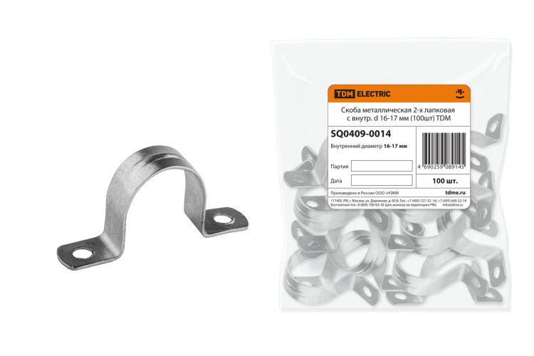 | Скоба металлическая 2-х лапковая СМД с внутр. d 16-17 мм (100шт) | SQ0409-0014 | TDM | 23.12.2025 | Под заказ | 4,02 ₽ | шт. | от 30 дней |