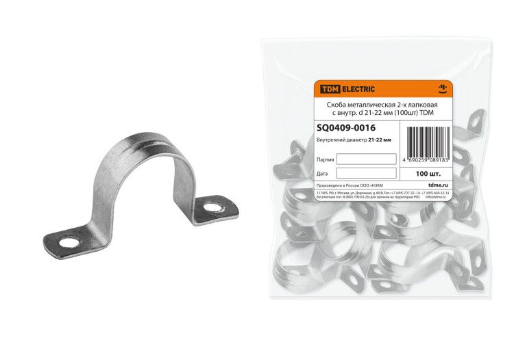Скоба металлическая 2-х лапковая СМД с внутр. d 21-22 мм (100шт) | SQ0409-0016 TDM