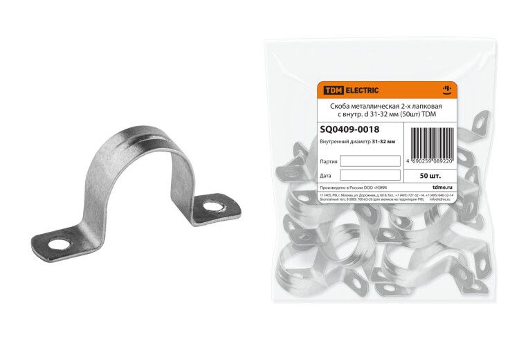 Скоба металлическая 2-х лапковая СМД с внутр. d 31-32 мм (50шт) | SQ0409-0018 TDM