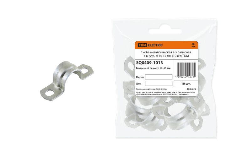 Скоба металлическая 2-х лапковая с внутренним d 14-15 мм (10 шт) - SQ0409-1013 TDM