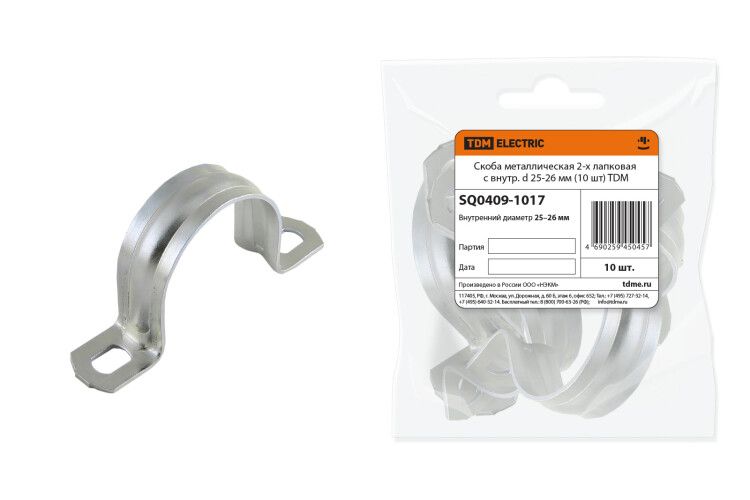 Скоба металлическая 2-х лапковая с внутренним d 25-26 мм (10 шт) - SQ0409-1017 TDM