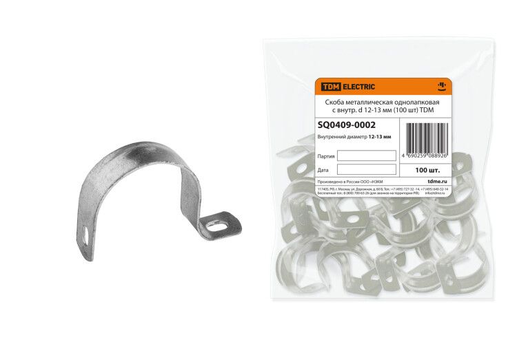 Скоба металлическая однолапковая СМО с внутр. d 12-13 мм (100 шт) | SQ0409-0002 TDM