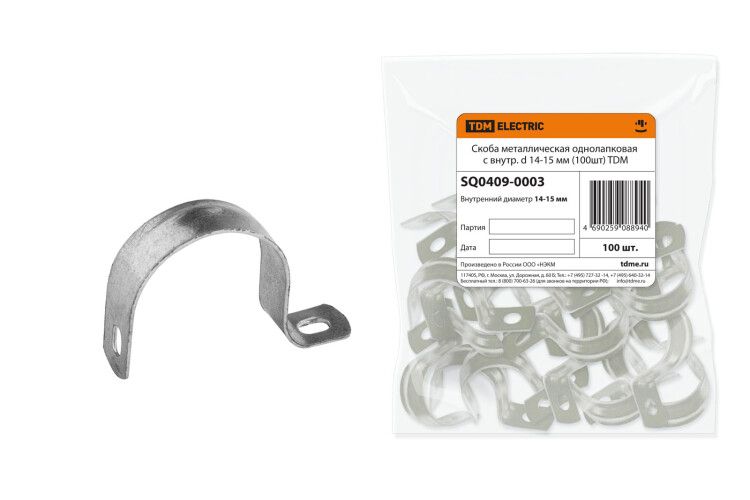 | Скоба металлическая однолапковая СМО с внутр. d 14-15 мм (100шт) | SQ0409-0003 | TDM | 13.03.2026 | Под заказ | 3,74 ₽ | шт. | от 30 дней |