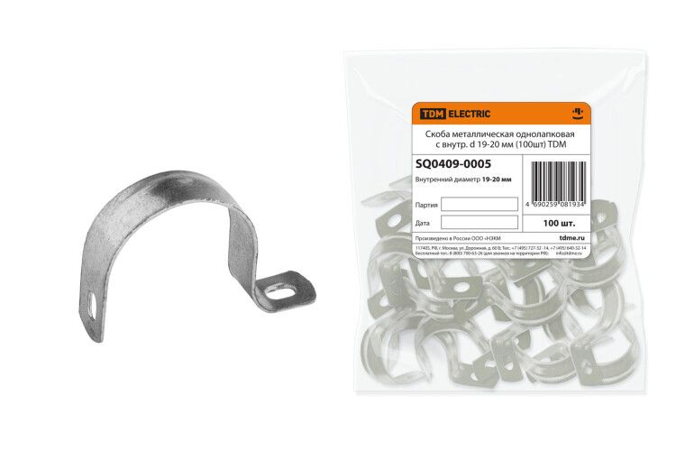 Скоба металлическая однолапковая СМО с внутр. d 19-20 мм (100шт) | SQ0409-0005 TDM