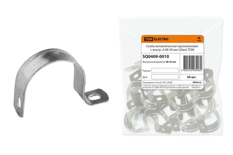 | Скоба металлическая однолапковая СМО с внутр. d 48-50 мм (50шт) | SQ0409-0010 | TDM | 12.12.2025 | Под заказ | 14,94 ₽ | шт. | от 30 дней |