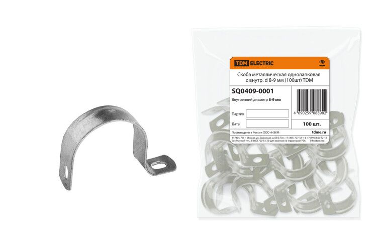 | Скоба металлическая однолапковая СМО с внутр. d 8-9 мм (100шт) | SQ0409-0001 | TDM | 13.03.2026 | Под заказ | 3,11 ₽ | шт. | от 30 дней |