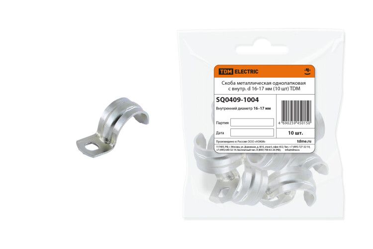 Скоба металлическая однолапковая с внутренним d 16-17 мм (10 шт) - SQ0409-1004 TDM