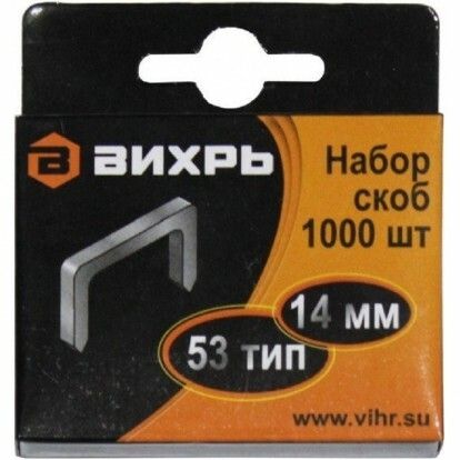 Скобы для мебельного степлера 14 мм тип 53 (1000 шт) от бренда Вихрь - это надёжный крепёж для фиксации тканей, плёнок и обивочных материалов к деревянным, пластиковым и фанерным основаниям. Артикул 73/9/2/5 рассчитан на массовое применение в мебельной сборке и ремонте.