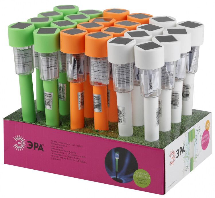 Светильник поставляется в промоупаковке по 24 штуки в трех цветах: насыщенный зеленый, оранжевый и белый. Это дает вам возможность выбрать подходящий цвет, который лучше всего подойдет к общему стилю вашего сада.