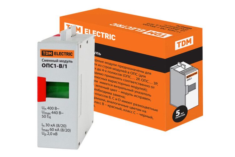 Сменный модуль ОПС1-B 1P от TDM ELECTRIC - надежное и удобное решение для защиты от перенапряжений, обеспечивающее безопасность и надежность работы электрического оборудования.
