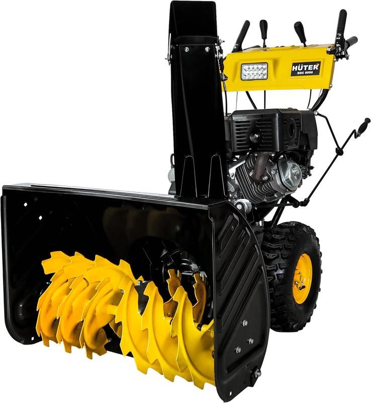 Мощный 4Т бензиновый двигатель Huter SGC 8000 70/7/18 для выполнения больших объемов работ|Надувные колеса с протекцией для отличной проходимости в любых условиях|Регулировка направления выброса снега|Ограничительные башмаки по краям приёмного желоба для работы на любой поверхности|Прочные металлические лопасти шнека позволяют легко измельчить примерзший снег|Яркая фара для работы в условиях плохой освещенности|Подогрев рукояток для комфортной работы|Стартер- электрический от сети 220В и ручной
