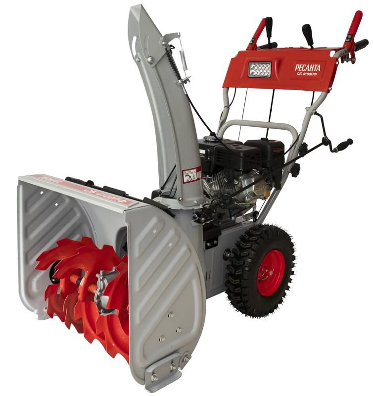 Снегоуборщик СБ 4100ПФ от Ресанта - бензиновая самоходная машина для очистки небольших площадей: дорожек, подъездов, дворов частных домов и дач. Устройство сочетает высокую проходимость, надёжный двигатель и управляемость на сложном снежном покрове.