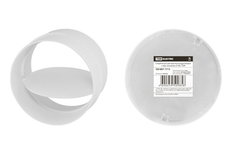 Соединитель для круглых воздуховодов с обратным клапаном SQ1807-1713 TDM ELECTRIC идеально подходит для организации приточных и вытяжных систем вентиляции, обеспечивая эффективное и надежное функционирование вентиляционной системы.