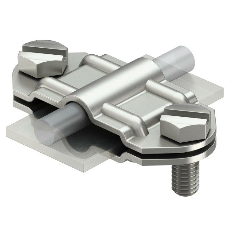 Соединитель полосы и проволоки продольный используется для создания механически прочного и электрически непрерывного контакта между круглым кабелем и плоской медной или алюминиевой шиной. Применяется в системах заземления, уравнивания потенциалов, присоединении к шинным магистралям, а также в промышленном оборудовании, где требуется высокая надёжность соединений.