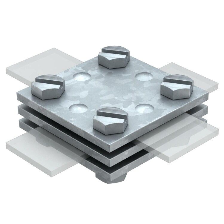 Этот крестовой соединитель используется для создания электрических переходов между двумя параллельными заземляющими полосами, расположенными под углом 90°. Подходит для установки на внешних и внутренних объектах: промышленные здания, трансформаторные подстанции, высотные сооружения, объекты энергетики. Соответствует требованиям VDE 0185-305-3 (IEC/EN 62305-3), что делает его подходящим для систем молниезащиты класса I–IV.