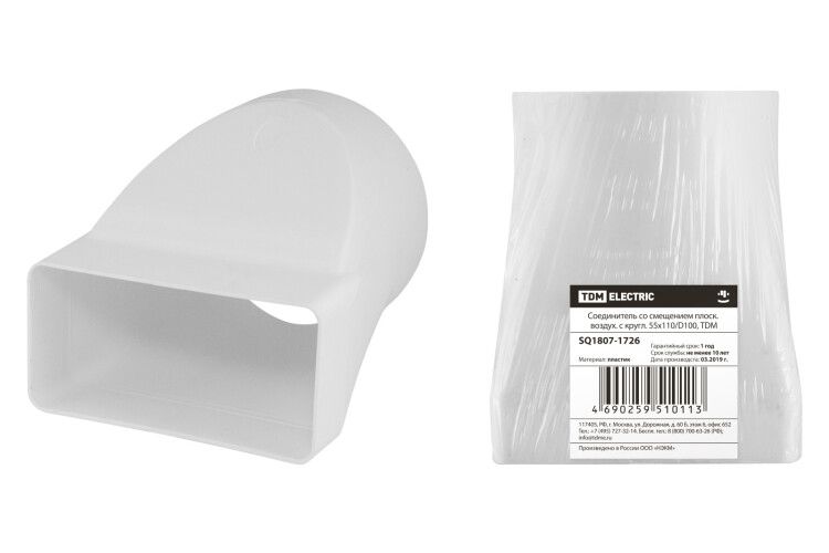 Соединитель со смещением плоского воздуховода с круглым сечением 55х110/D100 SQ1807-1726 TDM ELECTRIC - это удобное и функциональное решение для организации приточных и вытяжных систем вентиляции в жилых, торговых, офисных и производственных помещениях.