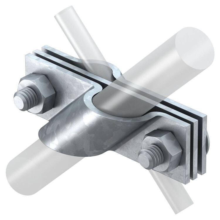 Соединитель стержня заземления и проволоки (2760 B-20 VA) оснащен промежуточной пластиной с 2 шестигранными болтами M10 x 30 и 2 шестигранными гайками M10, что обеспечивает прочное и надежное соединение проводов.
