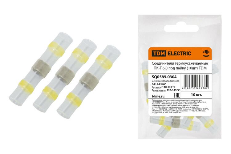 | Соединители термоусаживаемые ПК-Т 6,0 под пайку (10шт) | SQ0589-0304 | TDM | 01.01.2026 | Под заказ | 214,42 ₽ | уп. | от 30 дней |