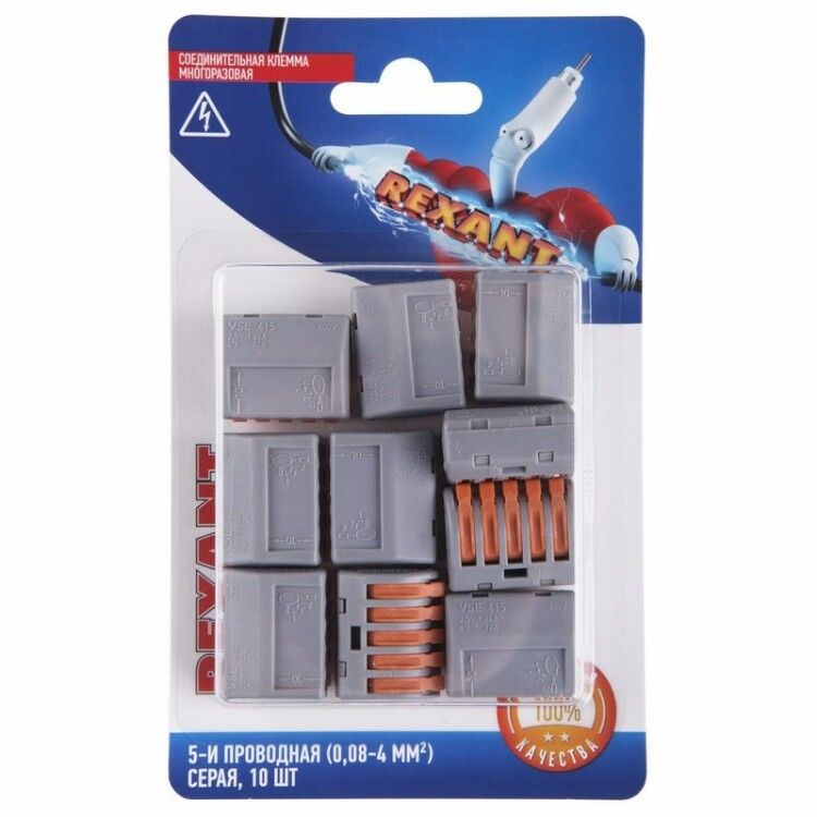 | Клемма соединительная многоразовая 5-и проводная 0.08-4кв.мм сер. (блист.10шт) Rexant 06-0202-C10 | 20.02.2026 | 2570 шт. | 23,6 ₽ | шт. | от 10 дней |
