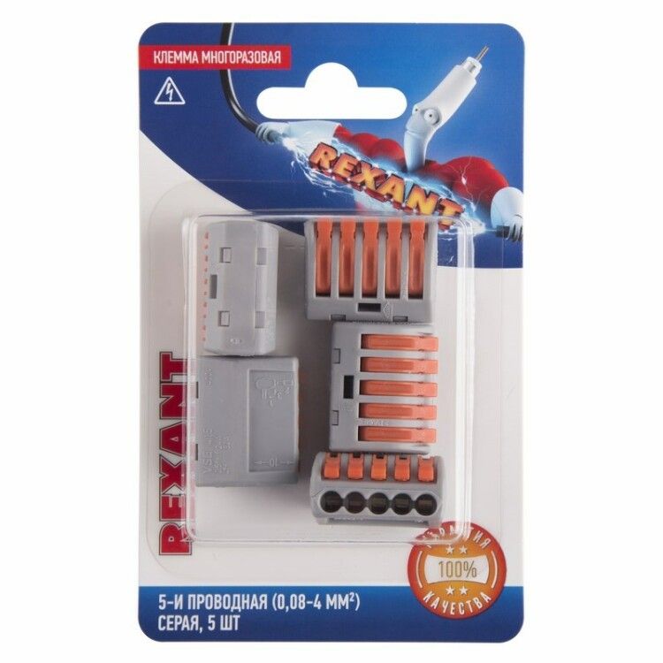 Универсальная клемма СМК 222-415, 5-проводная серая 0,08-2,5/4 мм² (блистер 5 шт./уп.) | 06-0202-B5 REXANT MEET