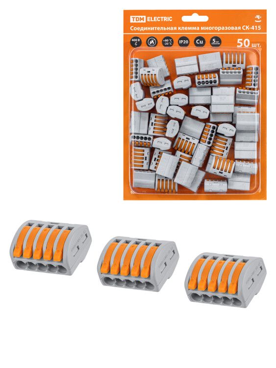 Соединительная клемма СК-415 (2,5 мм2) от TDM ELECTRIC - компактный и надежный вариант для быстрого соединения до пяти проводников в распределительных коробках, при подключении освещения и слаботочного оборудования. Артикул sq0527-0018 рассчитана на работу в сетях до 380 В, обеспечивает плотный контакт без инструментов и поддерживает безопасную эксплуатацию даже в ограниченном пространстве.