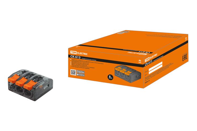 Соединительная клемма СК-613 (2,5мм2) SQ0527-0022 TDM ELECTRIC - это удобное и надежное решение для подключения и ответвления проводников в электрических цепях переменного тока с напряжением до 380В и частотой 50Гц. Она подходит для присоединения до 5 одножильных проводников сечением от 0,1 мм до 2,5 мм и многожильных медных проводников сечением от 0,1 мм до 4 мм.
