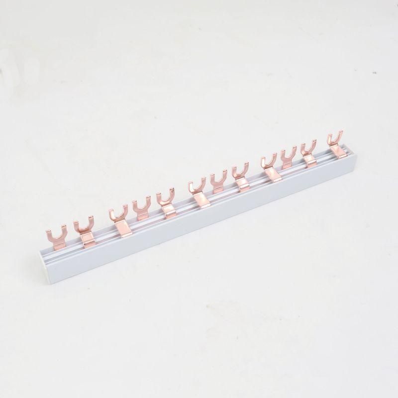 Соединительная шина BBS-MD63 типа FORK, 3 полюса, 18 присоединений для модульной аппаратуры - это компактное распределительное устройство, предназначенное для параллельного подключения до 54 модульных автоматических выключателей серии YON max в одном ряду. Шина обеспечивает надёжное электрическое соединение между устройствами без необходимости прокладки отдельных проводов, ускоряя сборку щитов и снижая риск ошибок при монтаже.