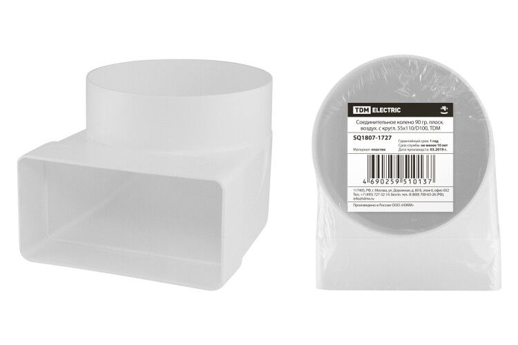 Соединительное колено 90 гр. плоск. воздух. с кругл. 55х110/D100 | SQ1807-1727 TDM ELECTRIC - это удобный элемент для организации приточных и вытяжных систем вентиляции в жилых, торговых, офисных и производственных помещениях. Оно изготовлено из пластика, что обеспечивает легкий монтаж и долговечность.