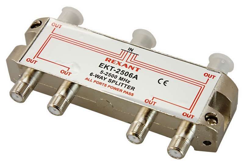 Делитель ТВ х 6 под F разъем 5–2500 МГц REXANT используется там, где необходимо подключить несколько телевизионных или спутниковых приемников к одному коаксиальному кабелю. Подходит для установки в жилых помещениях - многокомнатных квартирах, коттеджах, офисах, гостиницах. Частотный диапазон 5–2500 МГц обеспечивает корректную работу с сигналами DVB-S/S2, DVB-T/T2, цифрового эфирного и спутникового ТВ, включая высокочастотные каналы HD и UHD.