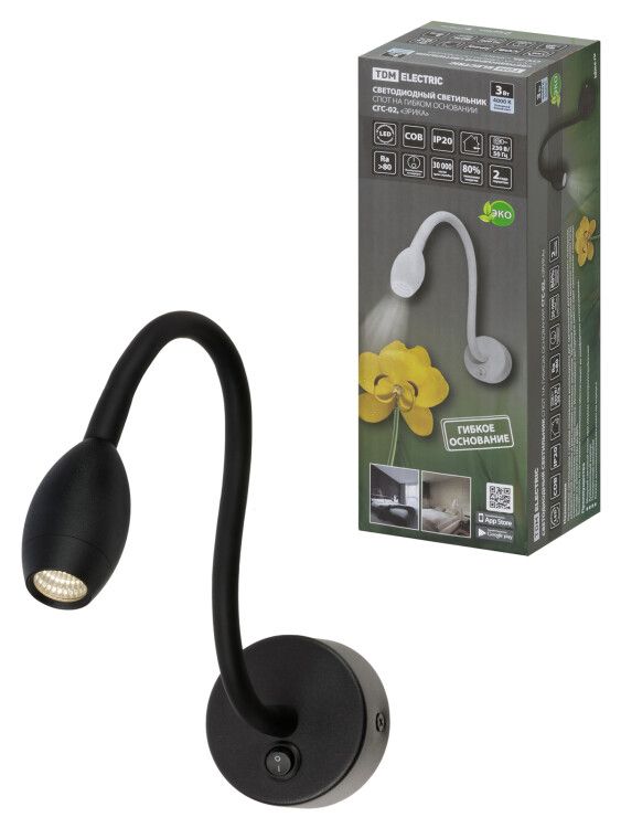 Спот на гибком основании СГС-02, 3 Вт, COB, 270 лм, 4000 К, IP20, "Эрика", с выкл., черный | SQ0358-0381 TDM
