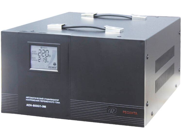 Стабилизатор напряжения РЕСАНТА АСН-8000/1-ЭМ 1ф 8кВт IP20 электромеханического типа обеспечивает выравнивание входного напряжения и защиту приборов от перепадов напряжения с суммарной мощностью до 8 кВт. Он работает с напряжением 220 В и обладает точностью стабилизации до +/-2%.