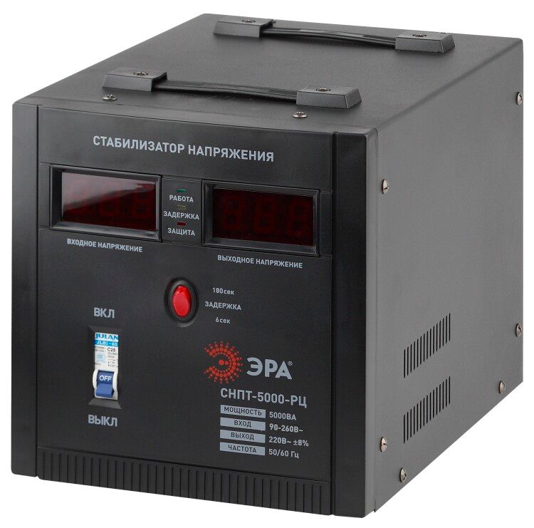 Стабилизатор напряжения переносной ЭРА СНПТ-5000-РЦ цифровой дисплей 90-260В/220В, 5000ВА - Б0035297