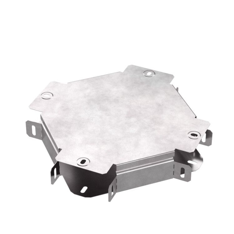 Ответвитель Х-образный с крышкой 200х100 от бренда ПРОМРУКАВ (артикул pr16.0464) предназначен для организации распределения кабельных трасс в местах пересечения проводов под углом 90 градусов. Изделие выполнено из оцинкованной стали с долговечным защитным слоем, обеспечивает надёжную фиксацию и доступ к внутренним кабелям через съёмную крышку.