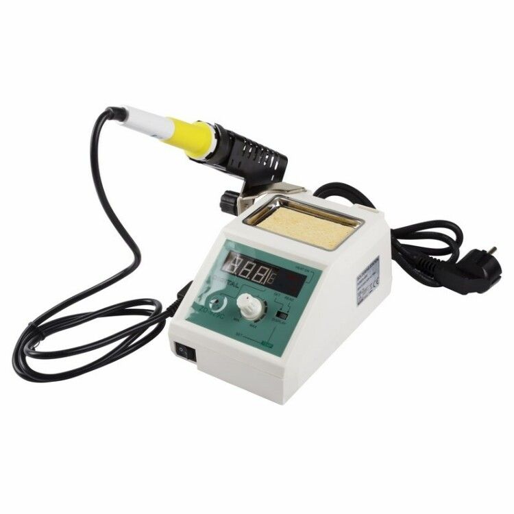 Паяльная станция оснащена цифровым дисплеем, что обеспечивает удобство использования. Температурный диапазон нагрева составляет 150...480 °С и регулируется с точностью 2-3 °С. Это позволяет подобрать оптимальную температуру для каждой задачи.