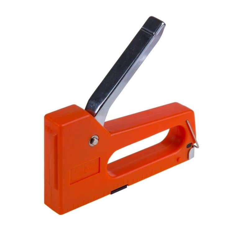 Степлер мебельный REXANT 12-5401 - это ручной инструмент с металлической ручкой и пластиковым корпусом, предназначенный для надёжного крепления обивки, сеток и тонких материалов с помощью скоб типа 53. Подходит для домашнего ремонта, мебельных мастерских и строительных задач.