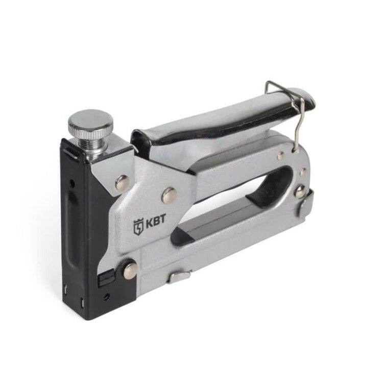 Степлер строительный СТС-1 серия ПРОФИ КВТ совместим только со скобами стандарта 53/A. Не используйте другие типы - они не войдут в магазин или вызовут заклинивание. Для работы достаточно приложить инструмент перпендикулярно поверхности и нажать на рукоятку. Магазин рассчитан на одну партию скоб - при исчерпании замените её полностью. Перед первым использованием проверьте, чтобы скобы были правильно установлены - направление изгиба П-образной формы должно соответствовать ходу механизма.