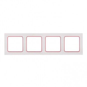 Рамка 4- местная белая с линией цвета красный PROxima EKF предназначена для декоративного и функционального оформления четырёх модульных устройств - выключателей, розеток, терморегуляторов или других механизмов серии «Стокгольм». Подходит для встроенного монтажа в стеновые ниши. Идеальна для интерьеров в скandinavском стиле, где важны минимализм и точные акценты. Применяется в квартирах, офисах, отелях и общественных зданиях.