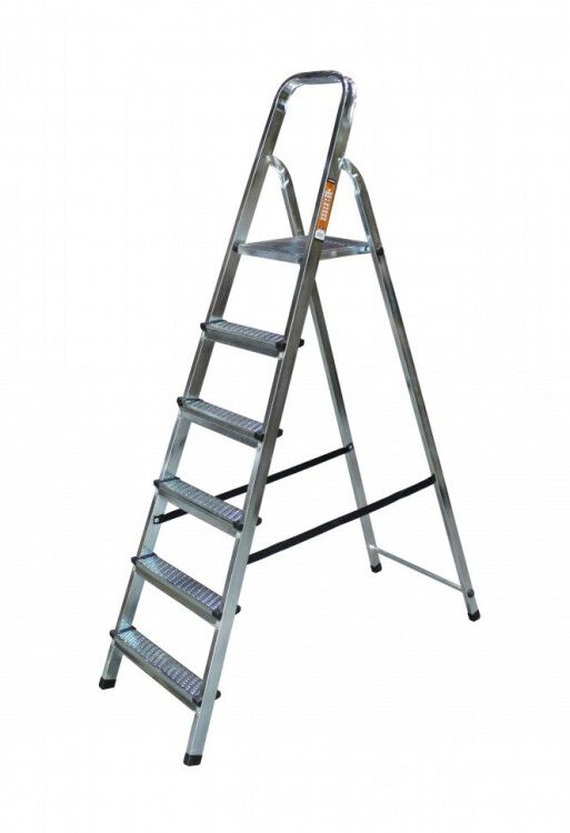 Стремянка стальная СС 1х6 не требует монтажа - готова к использованию сразу после раскрытия. Убедитесь, что поверхность, на которую она устанавливается, ровная, сухая и не скользкая. Не используйте на наклонных, мягких или неустойчивых основаниях. Для переноски и хранения лестницу легко сложить - она занимает минимум места благодаря компактной форме.