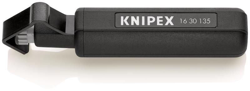 Стриппер для круглого кабеля (ПВХ резина силикон ПТФЭ) режимы реза: по окружности и продольный зачистка: 6 -29 мм L-135 корпус из противоударного пластика блистер - KN-1630135SB KNIPEX