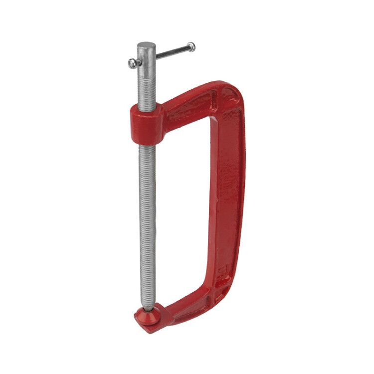 Изготовлена струбцина из высокопрочной легированной стали, покрытой краской, что обеспечивает надежную защиту от ржавчины и значительно продлевает срок службы инструмента.