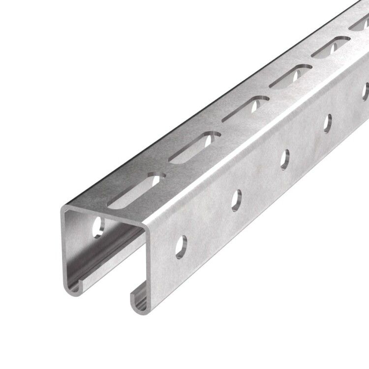- Перфорация: регулярный ряд отверстий по всей длине - для быстрой фиксации болтами, шпильками или канальными гайками