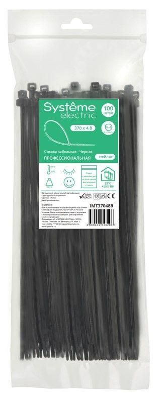Стяжка кабельная 370х4.8 черная (упаковка 100 штук) от бренда Systeme Electric (артикул imt37048b) - надежное решение для фиксации кабелей в жгуты и крепления к кабельным лоткам, щитовым конструкциям и другим поверхностям. Продукт из полиамида с УФ-защитой подходит как для внутренней, так и для наружной установки.