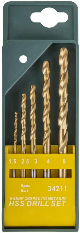 | Набор сверл HSS по металлу, титановое покрытие, 5 шт (1.5-2.5-3-4-5 мм) - 34211 | 22.02.2026 | 48 уп. | 378,18 ₽ | уп. | от 30 дней |