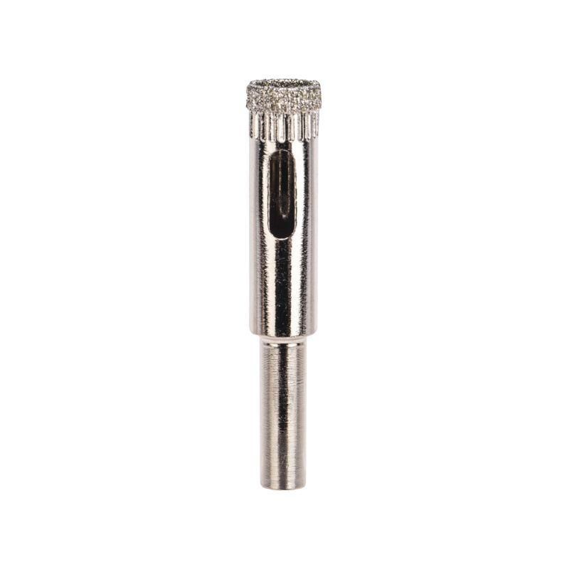 Сверло алмазное 10 мм по керамике и стеклу, сверло с цилиндрическим хвостовиком, глубина сверления 30 мм для пластика и камня устанавливается в любой патрон, поддерживающий цилиндрические хвостовики до 10 мм. Убедитесь, что патрон плотно зажимает хвостовик - люфт вызывает биение и быстрый износ. Для фиксации используйте ключ, если ваш инструмент имеет механический патрон.